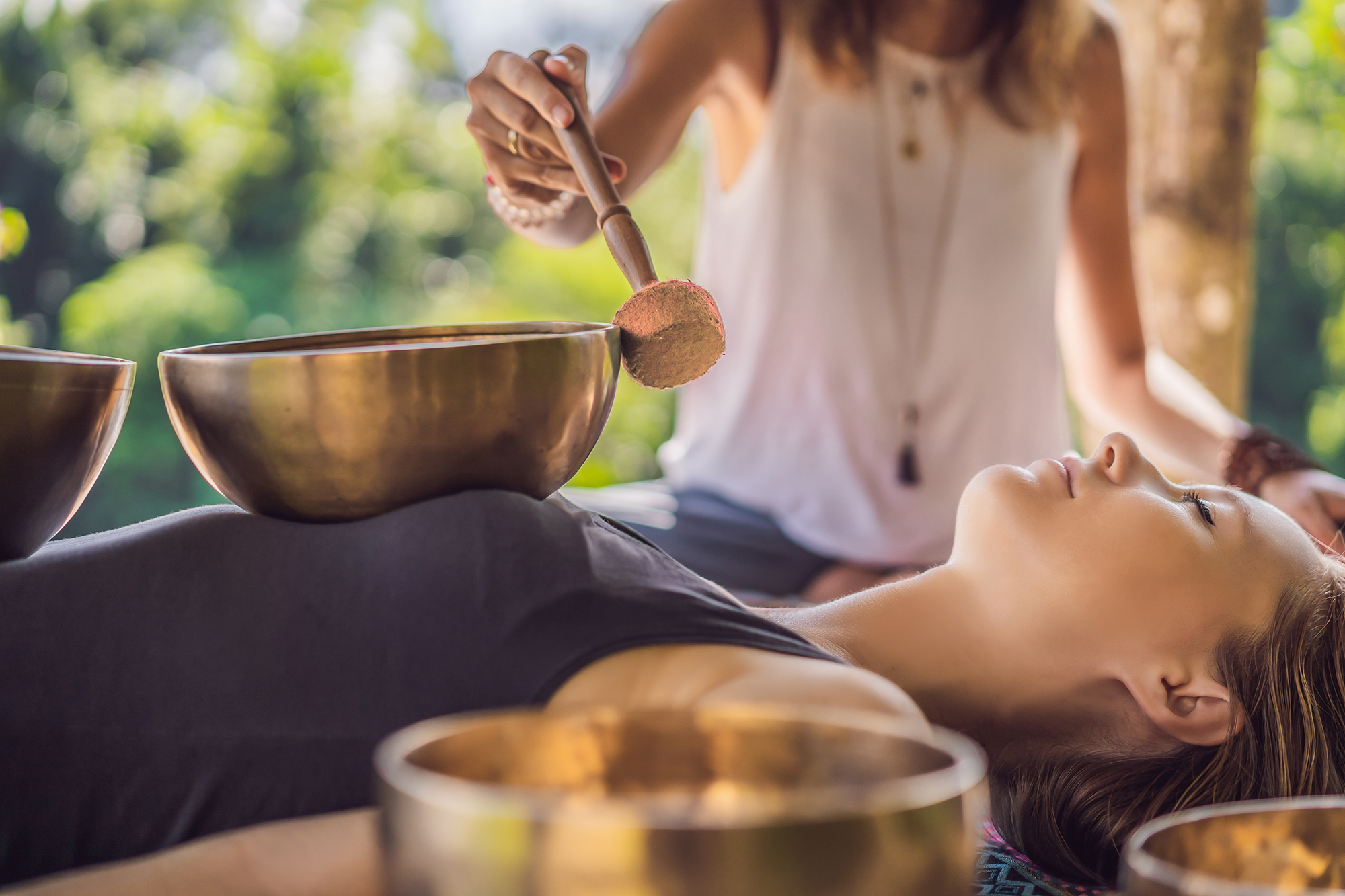 Wenn bei der Klangmassage die auf dem bekleideten Körper positionierten